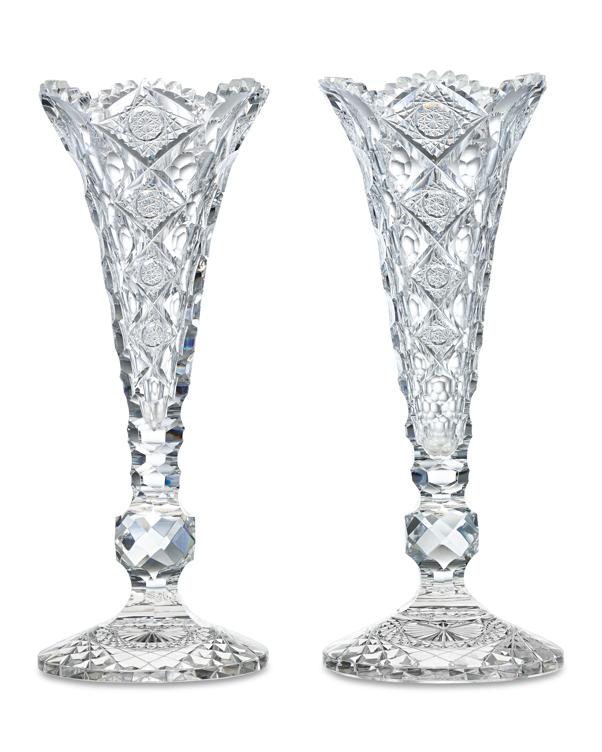 - This stunning pair of cut glass trumpet vases was crafted by T.G. Hawkes & Co.